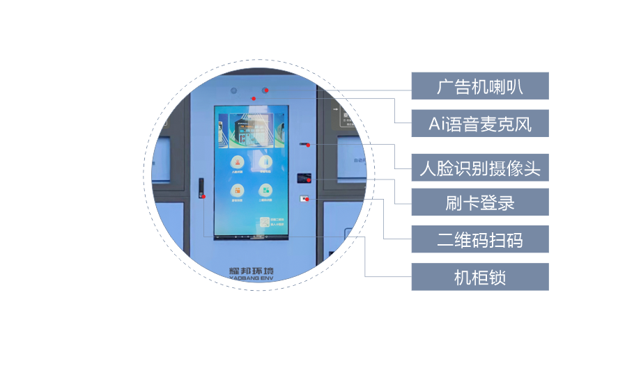 耀邦環(huán)境智能分類設(shè)備內(nèi)置積分兌換機(jī),依托先進(jìn)的人工智能、大數(shù)據(jù)、物聯(lián)網(wǎng)、云計(jì)算等技術(shù),對垃圾分類各環(huán)節(jié)進(jìn)行智能化管理。