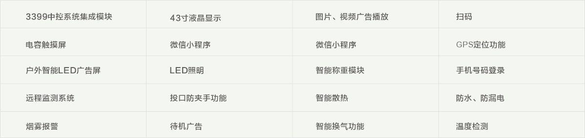 該設(shè)備是一款基于手機APP端和電腦端控制平臺的智能垃圾分類回收設(shè)備,包括用戶操作界面、中央控制系統(tǒng)、各類控制接口,AI物體識別、AI圖像追蹤、人臉識別、人體感應(yīng)模塊、嵌入式主板和二維碼掃碼模塊、環(huán)境溫度探測模塊、觸摸屏幕等。自主研發(fā)生產(chǎn)、外觀精致時尚、科技感爆棚,引領(lǐng)垃圾分類新潮流。