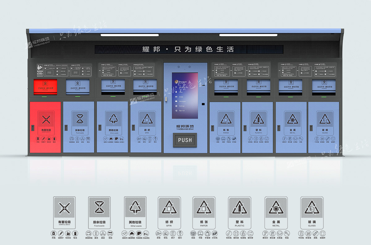 耀邦環(huán)境智能分類設(shè)備內(nèi)置積分兌換機,依托先進的人工智能、大數(shù)據(jù)、物聯(lián)網(wǎng)、云計算等技術(shù),對垃圾分類各環(huán)節(jié)進行智能化管理。